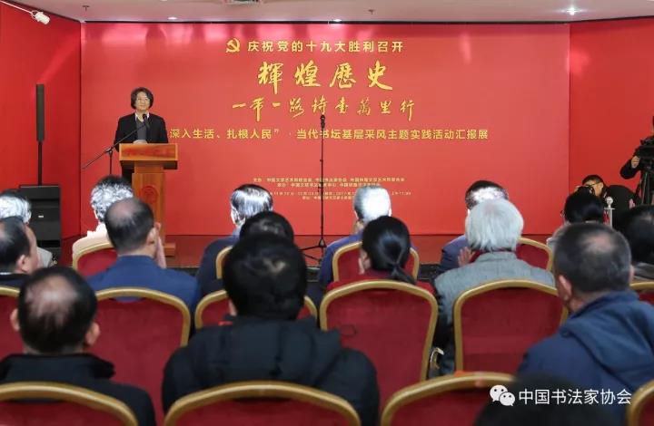 “辉煌历史:‘一带一路’诗书万里行”暨“深入生活、扎根人民”·当代书坛基层采风主题实践活动汇报展,是中国书协按照中宣部和中国文联工作部署,宣传“一带一路”宏伟战略的一项重要活动,也是中国书协深化改革,发挥行业积极引领作用的一项重要实践;活动自去年5月份启动以来,按照德艺双馨、思想精深、艺术精湛的要求,经活动组委会研究,按照老中青的原则,组织了21位当代书坛知名书法家,今年8月份,分东西两路,冒着酷暑,赴“一带一路”海上丝绸之路和陆上丝绸之路沿线代表性地区进行采风。书法家深入工厂、军营、港口码头、铁路、边防哨所,考察历史遗迹,感受时代变化,感受火热生活,通过自作诗词等形式,潜心创作了饱含深情的系列主题书法作品。今天的展览,就是采风实践主题活动的一次集中汇报。