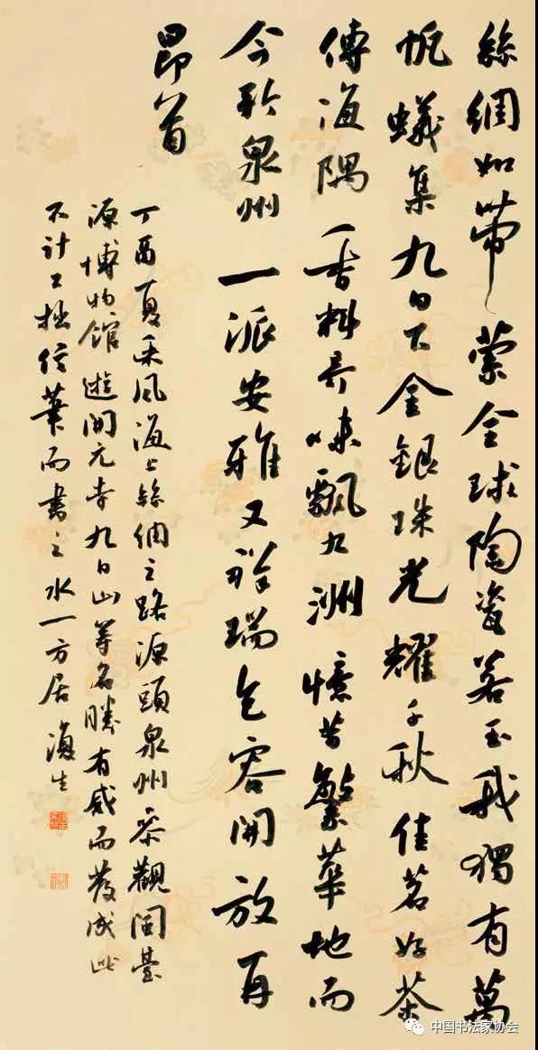 孙晓云在致辞中说,本次成果汇报展展现了丝路文化的历史文明与当代价值内涵,让人民群众和社会各界深刻感受万里神州的日新月异,领会习近平总书记“一带一路”建设宏伟构思的伟大历史意义。作为参与采风活动书家的一员,我有幸对海上丝绸之路进行了实地考察,对沿线地区五年来翻天覆地的变化,感受尤深,这都激发着我们书法工作者要不断推出讴歌党、讴歌祖国、讴歌人民、讴歌英雄的精品力作,用手中的毛笔书写中国精神、书写时代风采。书法家应当以历史的使命担当为己任,深入生活,走出工作室、走出案头,走出展览厅,走到人民群众中去考察、学习和体验生活,努力创作更多富有艺术性、时代性和人民群众喜闻乐见的优秀书法作品,推动书法事业的可持续发展,为实现中华民族伟大复兴中国梦而不懈努力。