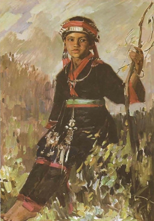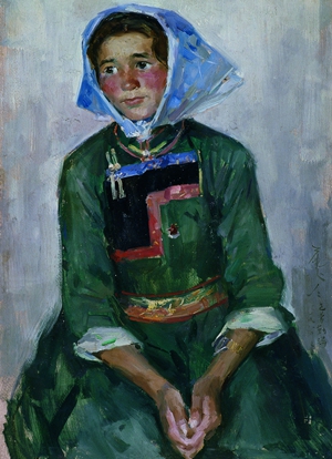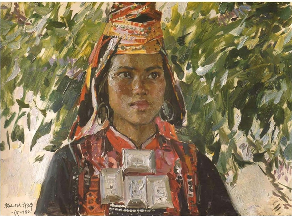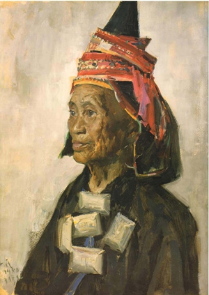 侯一民油画《广西金秀瑶族百岁老妇》1980年