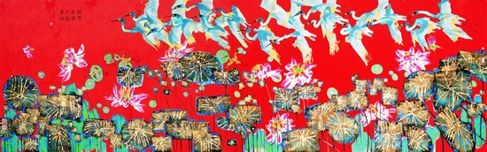 此次展览共分5个部分:第一部分为1949年至2004年的综合内容,表现了黄永玉先生从版画到国画的转变过程。第二、三部分为2004年至2013年的国画作品,呈现的是他在80岁以后多元化的创作,其中更有一幅一个月前的最新作品——丈二尺幅的《白描荷花》。第四部分为2004年至2013年的综合作品,包括油画、书法、雕塑、设计、玻璃工艺等。第五部分是1959年的壁画《中国各族人民大团结》,作为一个特别的展区,中国国家博物馆特别在东门二楼的平台上展示了20世纪50年代硕果仅存的壁画原作以及新近发现的壁画草图,同时还展示了壁画迁移与安装的过程。本版特选取展览中的亮眼之作,以飨读者。