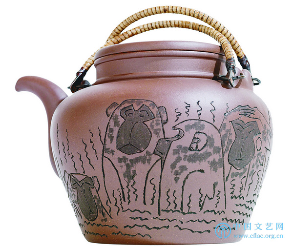 熟悉黄永玉水浒作品的人都知道,此番在紫砂壶上的创作与以往相比,一样又不一样:一样的是依然对女性的偏爱,因为妇女在旧社会没有地位,所以他对妇女比较同情;不一样的是,在对一些水浒人物的解读上,他又添加了一些新的理解。他以独特的视角解构和诠释水浒人物形象,既有借古讽今的诙谐幽默,也有深深的爱憎之心,有超然物外的天性释放,也有悲悯天下的普世情怀,深度揭示了他的人生观、价值观和生命体验——小器物之上呈现了黄永玉的大智慧。他塑造的艺术形象观者看了可能会捧腹大笑,也可能会引发回味和思考。