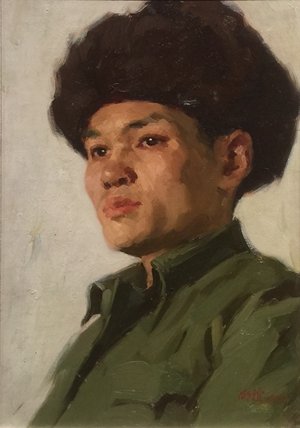 《兵团战士》 1977年 纸板油画 38.6cm*26.8cm