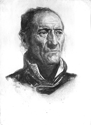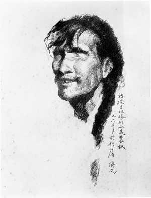 《阳光下的藏族男子》木炭素描 50×37cm 1976年