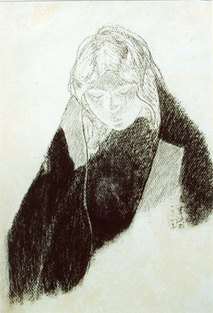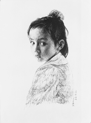 《傣族小姑娘》炭铝笔素描 55×39cm 1994年