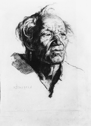 《被挖去双眼的西藏农奴》木炭素描 55×40cm 1965年