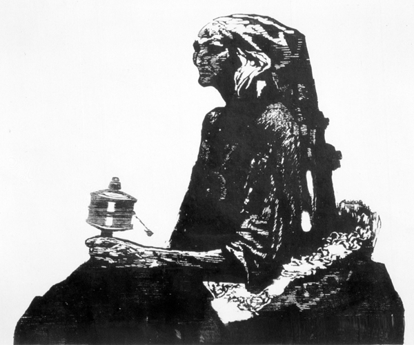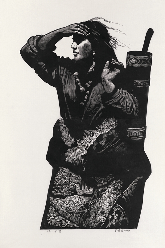 《藏族女孩》水印木刻 42.5×23.2cm 1958年