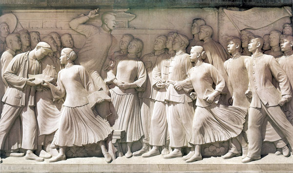 1953年4月,我因备讲大课,从天安门工地回到学校上班,还未完成的工作由与我同住一处宿舍的艾中信去接替。艾中信原来是甲午战争组负责人,后来甲午战争组取消,所以他去正合适。大约在7月中旬,老艾回到宿舍对我说:“纪念碑浮雕构图稿全部最后确定,鸦片战争组决定采用虎门销烟那幅,仍在你原有的构图稿上略有调整便算定稿。我们画家的任务到此结束,以后就是雕塑家的事了。”
