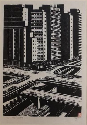 这幅作品构图新颖,高楼或左倾,或右斜,但又互相支撑,互为补充。作品黑白对比强烈,丰富而多彩的刀法,充分显示了这位木刻艺术大师创作态度的严谨和木刻技艺的超群。此画被大英博物馆收藏。