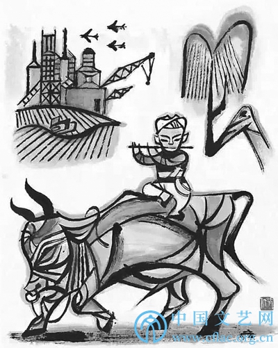 张仃创作于二十世纪六十年代的彩墨《春牛图》