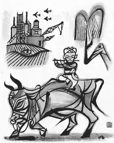 彩墨《春牛图》 张仃创作于二十世纪六十年代