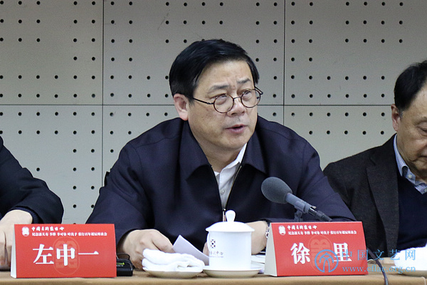 1月15日,由中国文联、中国美协主办的“纪念潘天寿、李桦、李可染、叶浅予、张仃百年诞辰座谈会”在京召开。图为中国美协分党组书记、驻会副主席、秘书长徐里致辞 邱茗 摄