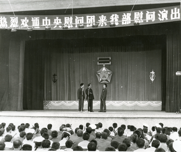 中央慰问团海政文工团常宝华常贵田在广西前线表演相声《一个越南士兵的自白》 王立成摄