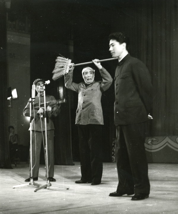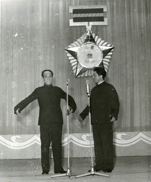 中央慰问团海政文工团常宝华、常贵田在广西前线表演相声《一个越南士兵的自白》 王立成摄