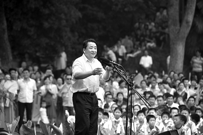 照片说明:2012年6月14日,姜昆在长沙县开慧乡进行演出。CFP