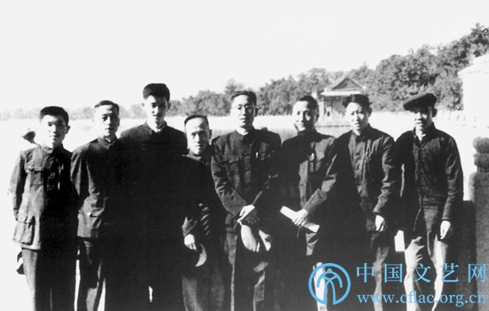 1955年,中国曲艺研究会部分同志在北海公园,右起第三人为罗扬