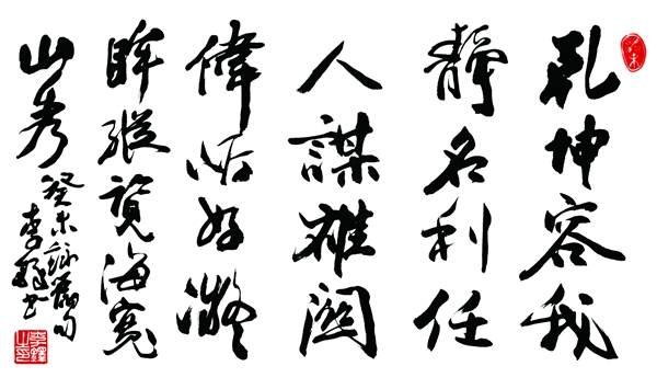 李铎自作词句:乾坤容我静,名利任人谋。雄关伟岸好凝眸,纵览海宽山秀。2003年