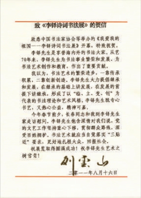 (贺信及图片转载自《中国书法》2012年第1期)