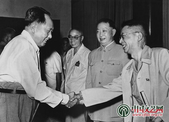 毛泽东和老舍(右一)、梅兰芳(右二)、田汉在一起 1960年 吕厚民 摄