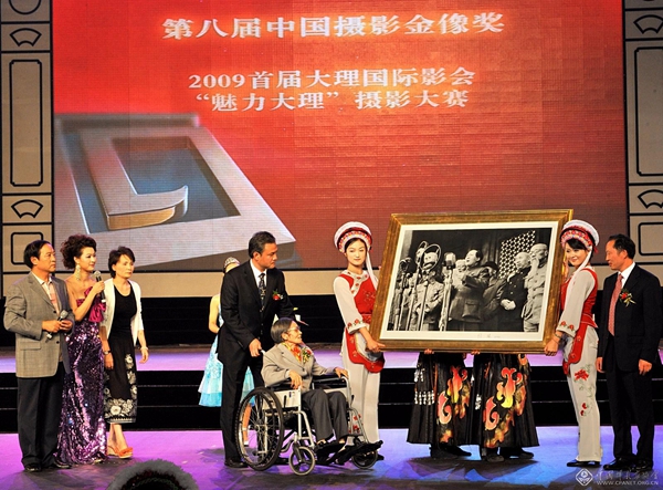 2009年8月到云南大理出席中国摄影金像奖颁奖典礼,向当地政府赠送签名代表作。这是侯波人生最后一次远行。 许志强摄