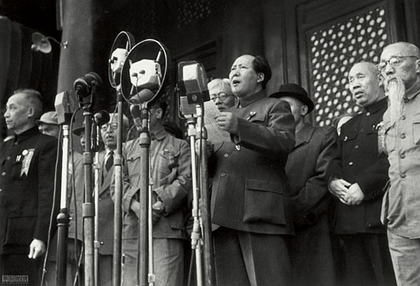 毛泽东在莫斯科大学讲话。 1957年 侯波 摄