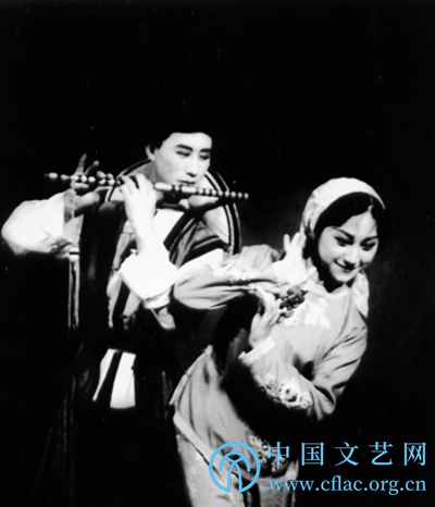 图为吕艺生在北京舞蹈学院当学生时与陈爱莲表演双人舞《牧笛》,同年他与王佩英在莫斯科举办的第六届世界青年联欢节上表演该作品,获表演银质奖章。