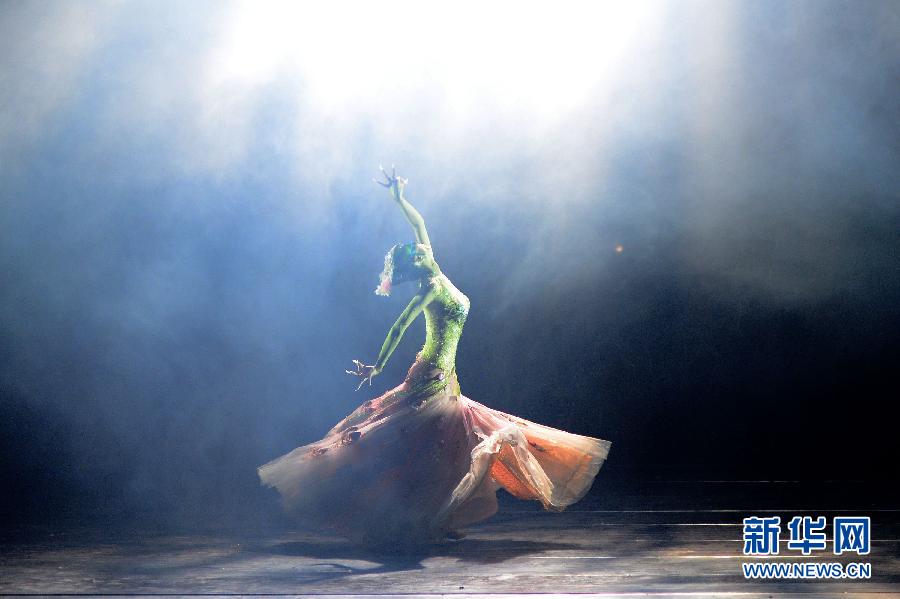 当日,著名舞蹈家杨丽萍舞台生涯的谢幕作品——大型舞剧《孔雀》在天津大礼堂上演,该剧分为春、夏、秋、冬四个篇章,倾注了杨丽萍对自然、艺术、生命、身体、生活等方方面面的经验和感受,堪称其四十年舞蹈艺术的精华沉淀。 新华社发(王晓明 摄)