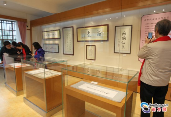 南方日报记者在旧居三楼看到了红线女的书法作品展,展出的作品包括红线女为佛山粤剧博物馆题写的匾额、为庆贺广州红豆粤剧团十五周年志庆题写的“红豆发新枝”、于非典时期题写的“众志成城抗非典”以及她最后一幅书法中堂“真心不怕红炉火”等。书里行间体现了红线女对祖国和人民、对艺术和生活的大爱之情。记者发现,作品展中,还有一份红线女2004年为南方都市报佛山版特刊《琼花盛放》亲笔题字的复印件。