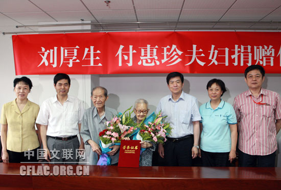 怀着同样的感动和崇敬,年轻同志们为二老送上了芬芳的花束。季国平、刘卫红等也表达着心中的感动,“两位老人非常节俭,每个月的支出也就在800元左右,最多的时候也不超过1200元。他们至今一直不请保姆,坚持自己买菜做家务。”中国剧协的工作人员都清晰地记得,多年来两位老人积极参加单位和社区组织的捐款捐物活动,多次为灾区捐款捐物:2008年的南方特大低温雨雪冰冻灾害带头捐款5000元;2008年汶川大地震捐出特殊党费1.5万元;2010年玉树地震捐款1万元;2010年舟曲特大泥石流灾害捐款1万元……每当人们劝说两位老人留下一些钱养老时,他们都淡然地说,国家给我们的工资花不了,这时候不用何时用!而此次捐款50万元,担心大家又劝说自己留钱养老,刘厚生傅惠珍夫妇特意在给中国剧协的信中提到:“我们的存款尚不止此数,考虑到今后有可能有其他意外(如住医院自费部分、自费出书等),故尚有余留,完全不会影响我们的生活。”