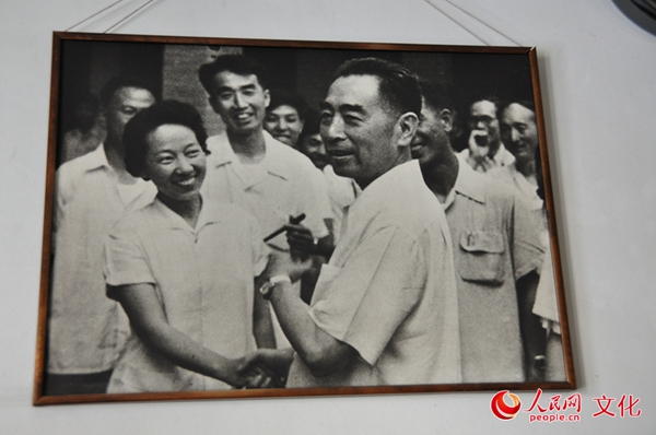 原以为老人定会提及那个家喻户晓的经典形象“江姐”,没想到,于蓝老师脱口而出的却是——“周莲”。看到我们有些不解,她回头指了指身后挂着的那张黑白老照片——照片中的周总理正当着众人的面,高兴地握着于蓝的手说着什么,于蓝颔首微笑,认真倾听。