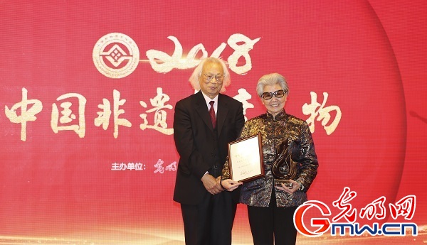 1月13日下午,由文化和旅游部非遗司指导,光明日报、光明网主办的“2018中国非遗年度人物”推选活动在北京举办。中国民间文艺家协会第九届名誉主席冯骥才、国家级非物质文化遗产项目武汉杂技国家级代表性传承人夏菊花、国家级非物质文化遗产项目昆曲国家级代表性传承人蔡正仁、国家级非物质文化遗产项目北京评书国家级代表性传承人连丽如、国家级非物质文化遗产项目漆器髹饰技艺(徽州漆器髹饰技艺)国家级代表性传承人甘而可、中国艺术研究院研究员田青、国家级非物质文化遗产项目香包(徐州香包)市级代表性传承人王秀英、浙江省温州市非遗中心副主任季海波、国家级非物质文化遗产项目苏绣国家级代表性传承人姚惠芬、省级非物质文化遗产项目赤水竹编市级代表性传承人杨昌芹共10位非遗传承人、专家学者被推举为“2018中国非遗年度人物”。