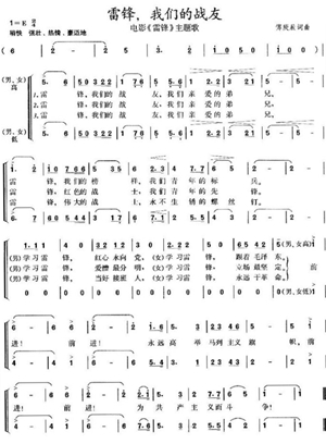 由傅庚辰谱曲的歌曲《雷锋我们的战友》(电影《雷锋》主题曲)