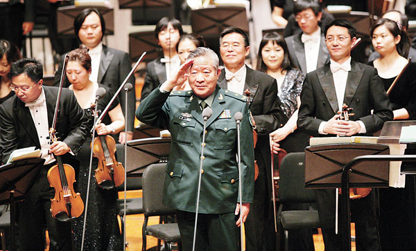 傅:除了以前的创作,进入新世纪我还写下一系列作品,开了一系列的作品音乐会:2003年我谱写了由翟泰丰作词的大型声乐套曲《航天之歌》,开了“航天之歌交响音乐会”;2004年谱写了由翟泰丰作词的大型声乐套曲《小平之歌》,开了“小平之歌交响音乐会”;2005年整理了交响诗《红星颂》,写了交响组曲《地道战的故事》,开了“民族之声交响音乐会”、“时代之声傅庚辰作品音乐会”;2006年开了“创业者的歌——傅庚辰作品音乐会”;2007年纪念建军80周年开了“革命诗篇——傅庚辰作品音乐会”;2009年纪念新中国成立60周年开了“时代之声——傅庚辰作品音乐会”;今年的音乐会是为党的90华诞的献礼。