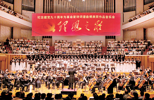 为向建党90周年献礼,5月23日,在毛泽东同志《在延安文艺座谈会上的讲话》发表69周年之际,由中国文联、解放军总政宣传部、中华海外联谊会、中国人民对外友好协会、中国音协主办的“理想之歌——傅庚辰作品音乐会”在国家大剧院举办。全国政协副主席、中国文联主席孙家正和中国文联党组书记赵实,中国文联党组副书记、副主席李屹,中国文联党组成员、副主席廖奔,中国文联党组成员、书记处书记夏潮,中国文联副主席丁荫楠、白淑湘、刘兰芳、李维康,中国音协名誉主席傅庚辰,主席赵季平,分党组书记、驻会副主席徐沛东等出席了音乐会。