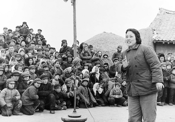 一九六三年,王昆作为第二批中央农村文化工作队陕西队队员,为社员演唱歌剧《白毛女》选段。新华社记者 李一方 摄