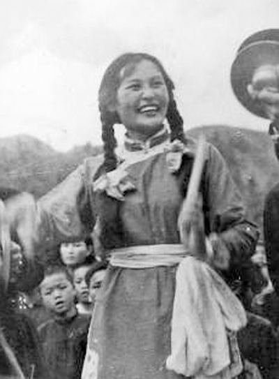 1951年,郑小瑛在打大秧歌鼓。资料照片