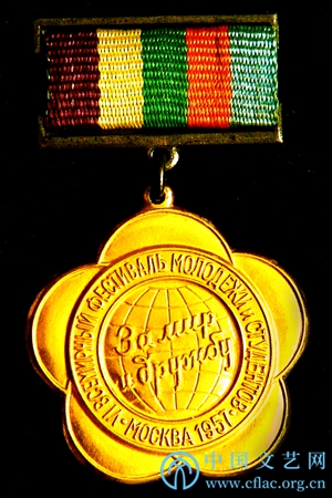 1957年金业勤在莫斯科第六届世青节杂技比赛中荣获金奖