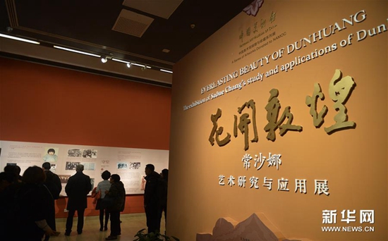 3月8日,观众在中国美术馆参观展出的常沙娜作品。当日,由中国美术馆、清华大学主办的“花开敦煌——常沙娜艺术研究与应用展”在北京中国美术馆开幕,共展出我国著名艺术设计家、教育家常沙娜的壁画临摹、花卉写生、应用设计等不同类别的艺术作品260多件。展览将持续至3月19日。新华社记者 鲁鹏 摄