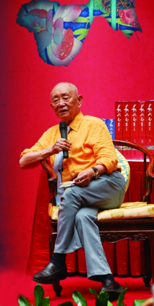 7月28日下午,《黄永玉全集》首发式的现场。一位身着黄衬衣,袖管半卷,胸前系浅蓝色领带的老头,步履轻快地现身,像是一块轰然落地的磁石,立马将各路媒体吸引到他的身边。