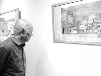展厅里,黄永玉看着自己过去的作品感叹道:“这样的画现在画不出来喽。”本报记者 李韵摄