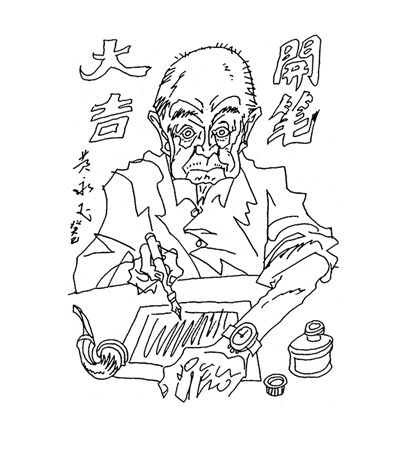 藏书票上的黄永玉自画像