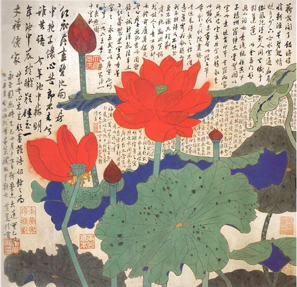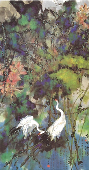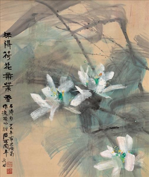 1977年作 彩荷 镜心 作品尺寸:32×45cm 设色纸本