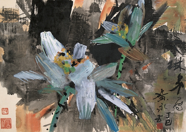1999年作 水仙 立轴 作品尺寸:118×120.5cm 设色纸本