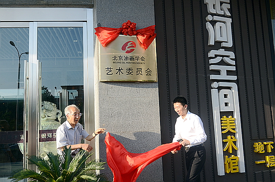 中国美协原主席、北京油画学会主席靳尚谊与银河空间集团执行董事潘勇为北京油画艺委会揭牌