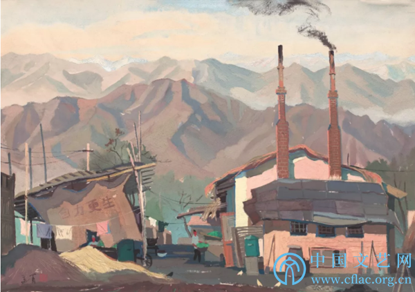 《太行山下的干校》 1972年 纸本 水粉 39.5×54cm