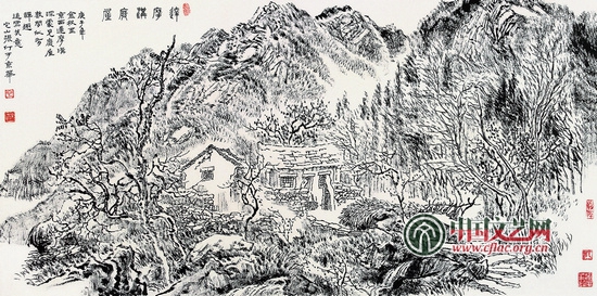 张仃绘画《达摩沟废屋》