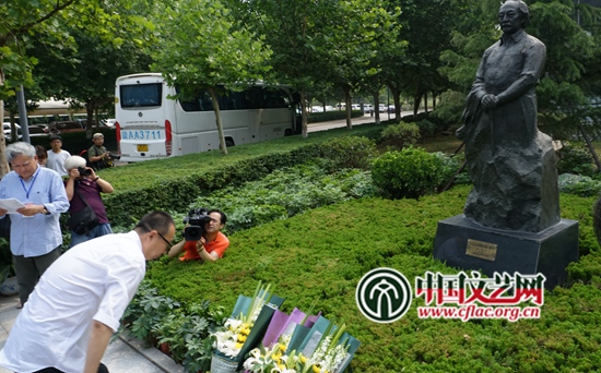 潘鲁生和与会专家学者向张汀先生塑像献花 中国文艺网 王渝 摄