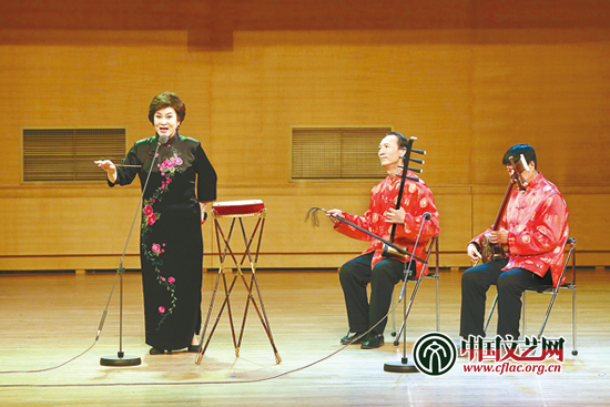 我从小对东北大鼓的感情非常深,因为我的母亲、姨母都是演唱东北大鼓的艺人。新中国成立前都是在小河沿的凝香榭献艺。刚解放的时候,已登记的唱东北大鼓的女艺人就有60多名。张学良将军非常喜欢我们的东北大鼓,当时张学良在台湾都已经80多岁了,我们的演员到那里演出的时候他还问道:“还有没有唱奉调的了?有没有唱蹦蹦的了?”蹦蹦指的是二人转,奉调指的就是东北大鼓。张将军说:“我听到三弦响,就感到亲切。”三弦上的琴弦就像长长的相思线连着台湾与沈阳,大鼓令他对家乡念念不忘,可见东北大鼓的魅力。