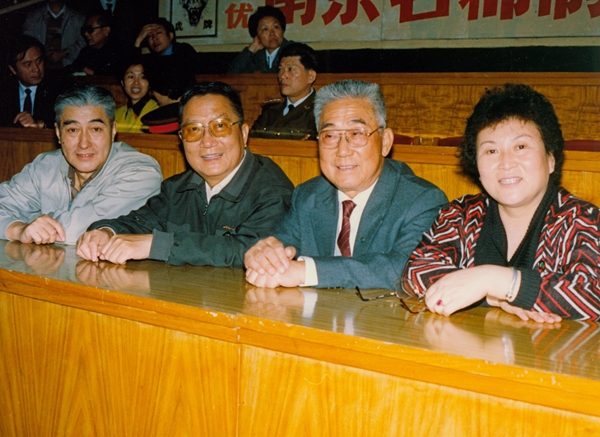 1990年10月在南京体育馆中国曲艺节第一场演出时与荣高棠、吴宗锡、刘兰芳合影