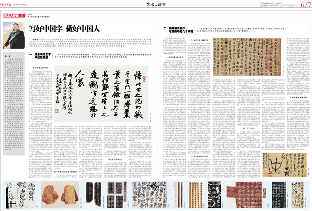 我们常讲书法家、艺术家要德艺双馨,我认为,德艺双馨不是沽名钓誉所能获得的,更不是经过炒作被推上光荣榜的。德艺双馨,是一个人经过若干年的思想修养和品质升华,再加之不懈的刻苦钻研、进取努力以精进业绩,使自身的技艺水平达到出类拔萃的高度。而他的信誉和声望,也能得到民众的认可并赞许。德艺双馨者,是国家和民族的骄傲,是百姓中的精英,更是国家建设的栋梁。要正确把握德与才的辩证关系。德是才的统帅,决定着才的作用的方向;才是德的支撑,影响着德的作用的范围。与才相比,德始终是第一位的。只有把自身的价值实现和艺术追求融入为党和人民事业的不懈奋斗之中,才能在纷繁复杂的环境中始终保持清醒的头脑,为人民创作出更多更好的作品。要真抓实干、敢于负责、锐意进取。坚持一切从实际出发,说老实话、办老实事,埋头苦干、不事张扬、作风正派、情趣健康。在目前社会环境比较复杂的情况下,这方面修养显得尤为重要。清清白白做人、干干净净做事,老老实实说话,不要装腔作势、故弄玄虚,这样的书法家、艺术家在德的方面才是过硬的。这也是书法艺术健康发展的前提,没有良好的道德修养,一切无从谈起。