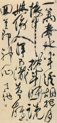 再者,“力”有赖于书写的技法。同样的一条线,出自书法家之手,就有立体感,就有力度,反之则无。这反映了驾驭笔的能力,和对技法掌握、运用以及熟练的程度。所以,学书,不能不研习笔法,不能不对已成为程式的提、按、转、折,抑、扬、顿、挫,入锋、出锋等用笔方式作反复的训练,以达到精熟和运用自如的程度,否则,“力”的表现是不可能的。实际上,通过训练有素的书写技法,将自然的力(自然界运动中表现出的诸种现象)和人类固有的力(生命、体力、认识和改造自然的能力),进行抽象与提炼,使之转化为艺术的“力”,这个“力”便是源于生活又高于生活的人的艺术创造活动最高级的体现。其中,“悟”是由自然之力转化为艺术之力的魂,没有“悟”,这种力的转化是难以形成的,因而书法中之力也是难以体现的。